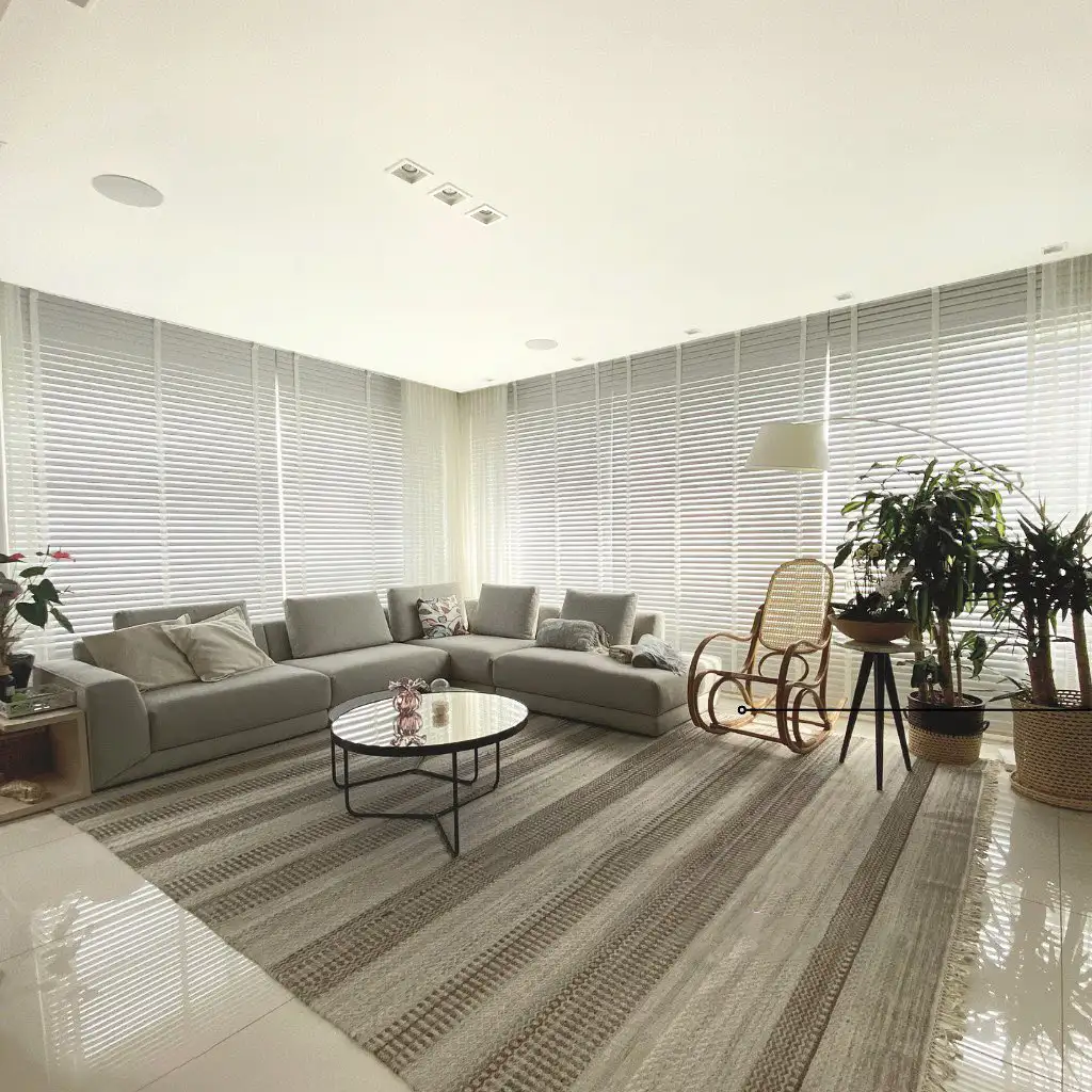 -14% Persiana rolô tecido rústico branca de R$ 209,00 /m² por R$ 179,00 /m² 6x de R$ 29,83 /m² sem juros ou 5% de desconto no Boleto/PIX